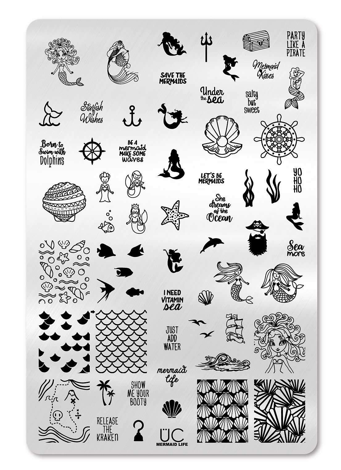 Another special request we've seen pop up time and time again: MERMAIDS!!!! Well we heard you loud and clear and we could not be more excited to release this very special plate to you! Make a splash and show off your fin-side! Also, we've added some Pirate nail art stamps to this plate as well to compliment your next adventurous mani! Mermaid Nail Art has never been more popular - so jump overboard, get your fins on and get ready for some mermaid loving manis!