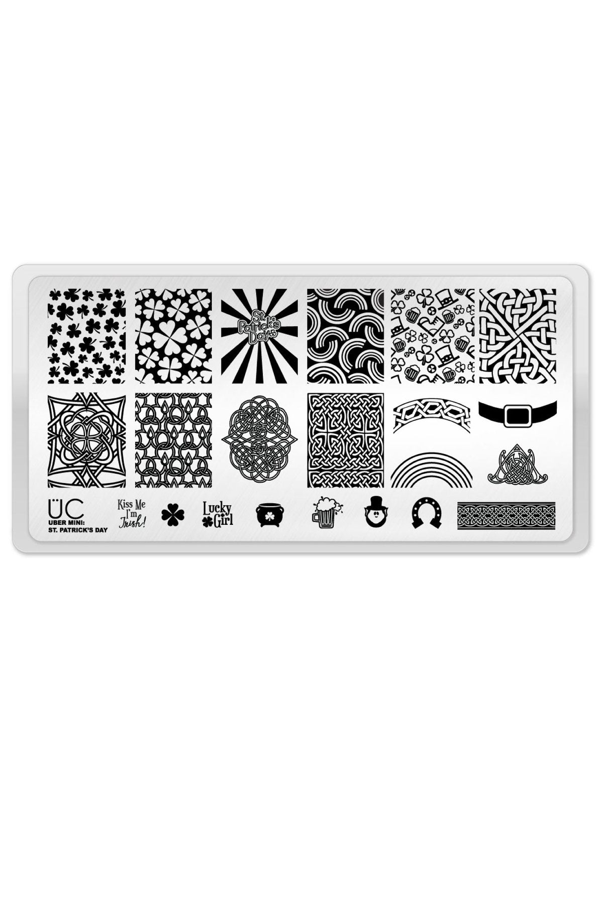 This is your lucky day. We've developed a plate that celebrates everything related to St. Patrick's Day festivities and then some! From negative space rainbows to Celtic knots, hat buckles to shamrocks – and the most adorable Leprechaun you've ever seen – this plate is sure to put all your green and gold to good use.