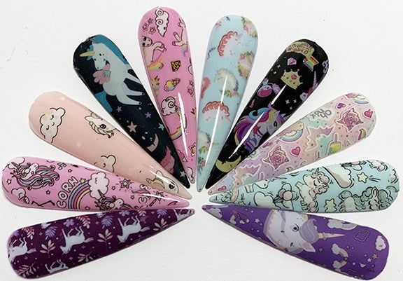 10 pcs. of ultra thin easy to transfer with sweet Unicorn designs.