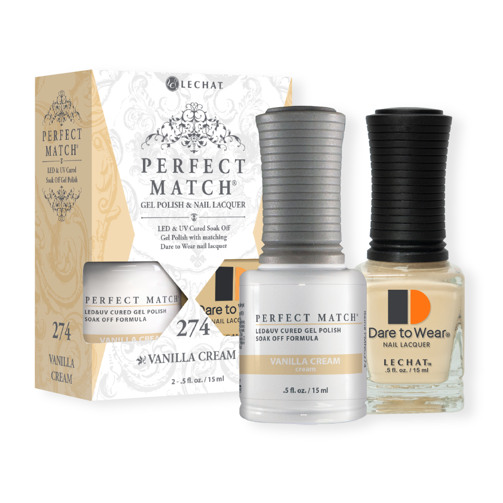 Step 2: Apply a thin layer of Perfect Match Gel Polish. Cure in lamp for 30 seconds.