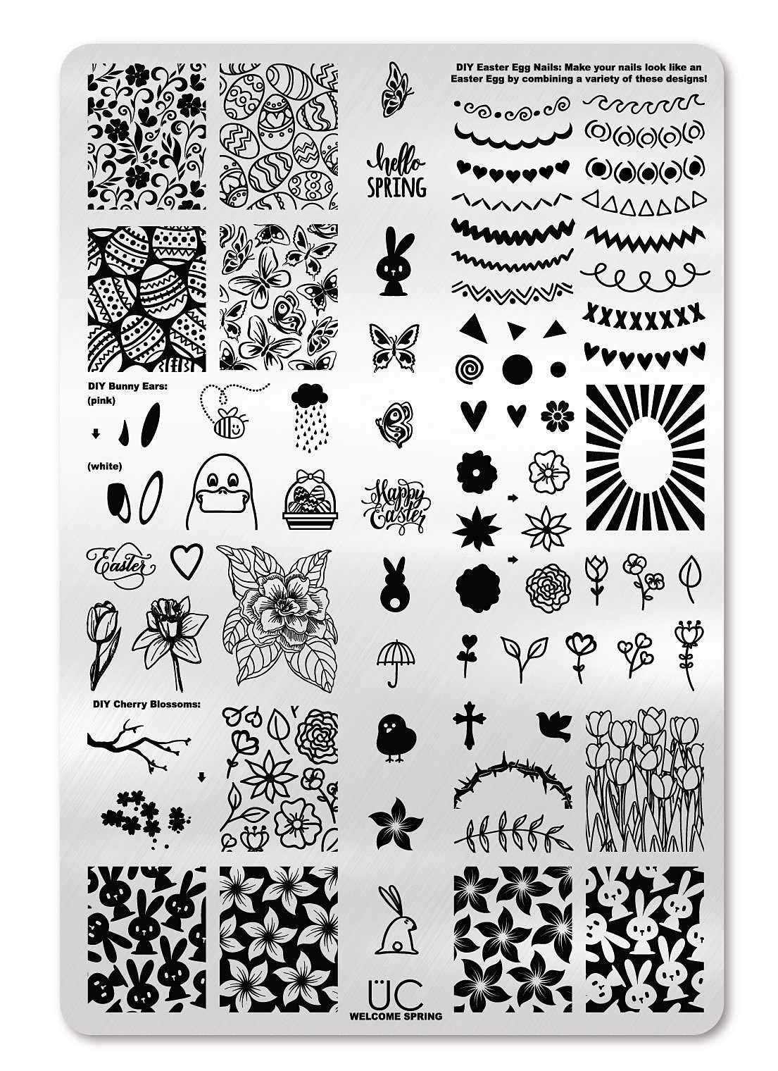 Celebrate Spring and Easter in style with our all new Welcome Spring plate! It's full of cute bunnies, Tulips, a DIY layered Cherry Blossom design and even layers to make your nails into adorable Easter Eggs! Wanting to find the most amazing spring nail art? How about turning your nails into Easter Egg Nails? Look no further than this nail stamping plate